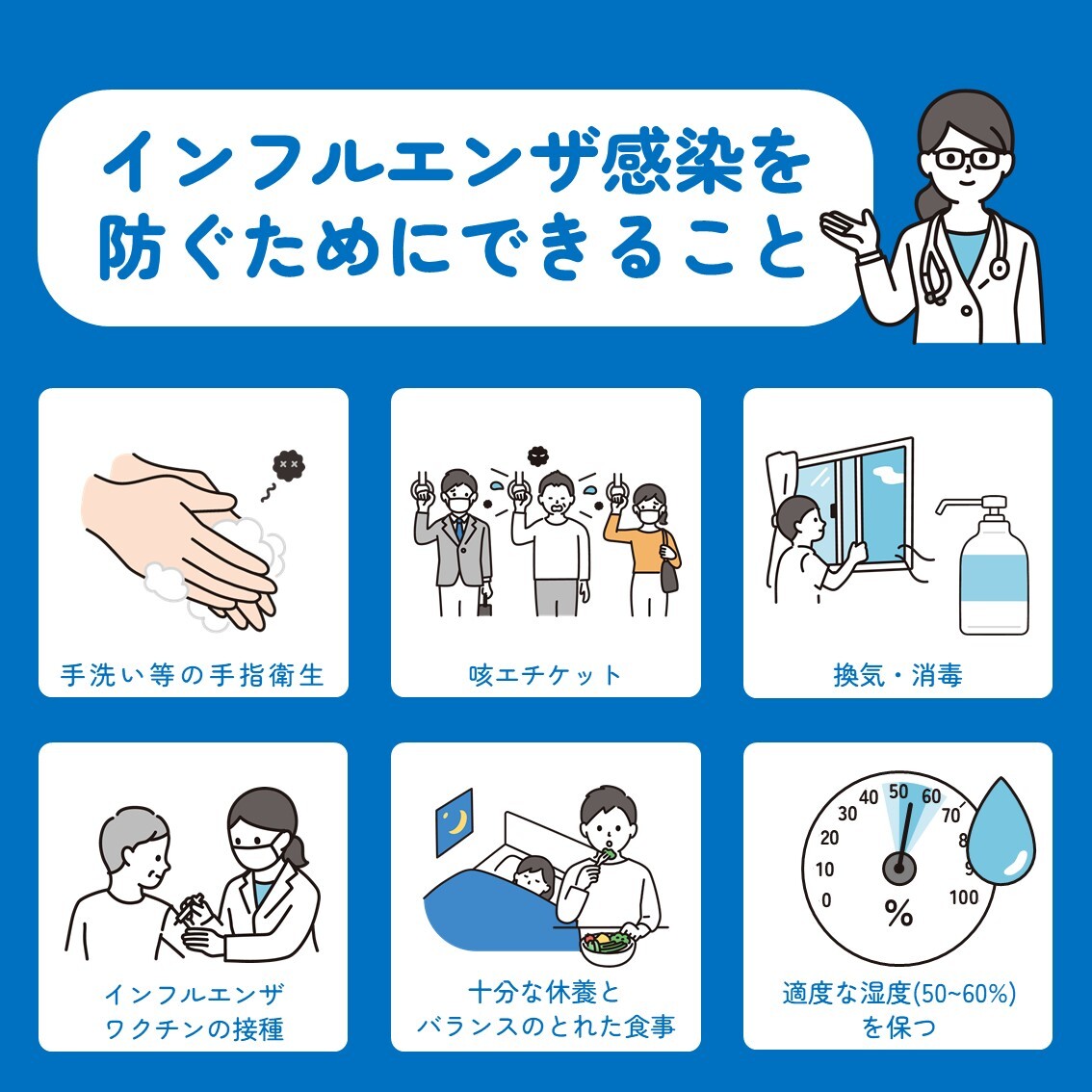 もし、高熱が続く、呼吸が苦しい、意識状態がおかしいなど具合が悪ければ、早めに医療機関(内科や小児科など)を受診しましょう。特に、幼児や高齢者、持病のある人、妊娠中の女性は、肺炎や脳症などの合併症が現れるなど、重症化する可能性があります。